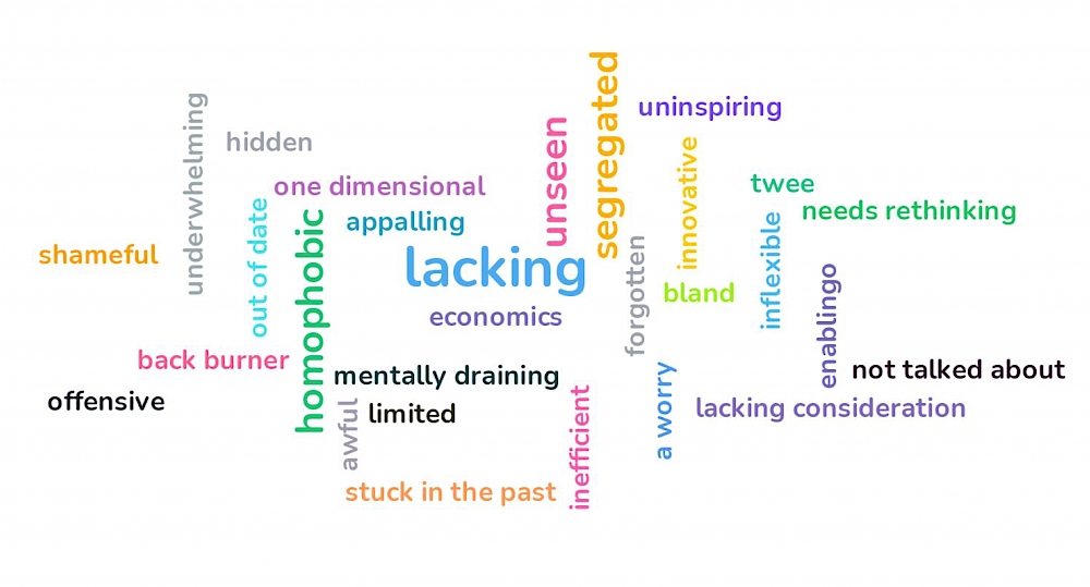 The format was complimented by QR-code activated questions for delegates (answered using their phones) which followed each presentation on inclusive neighbourhoods with responses generating word-clouds in real time.