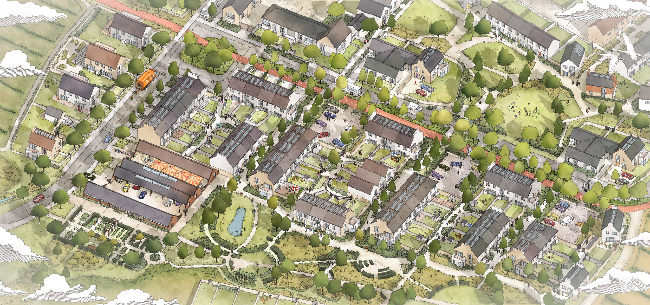 Some, like Marleigh and Eddington are pretty good. (Hands up – we’ve played a key role in designing homes for and placemaking these settlements). The Trad ones are ok too – part of Sherford are appealing while Tornagrain, near Inverness, is shaping up to be exemplary in terms of rural town-making.