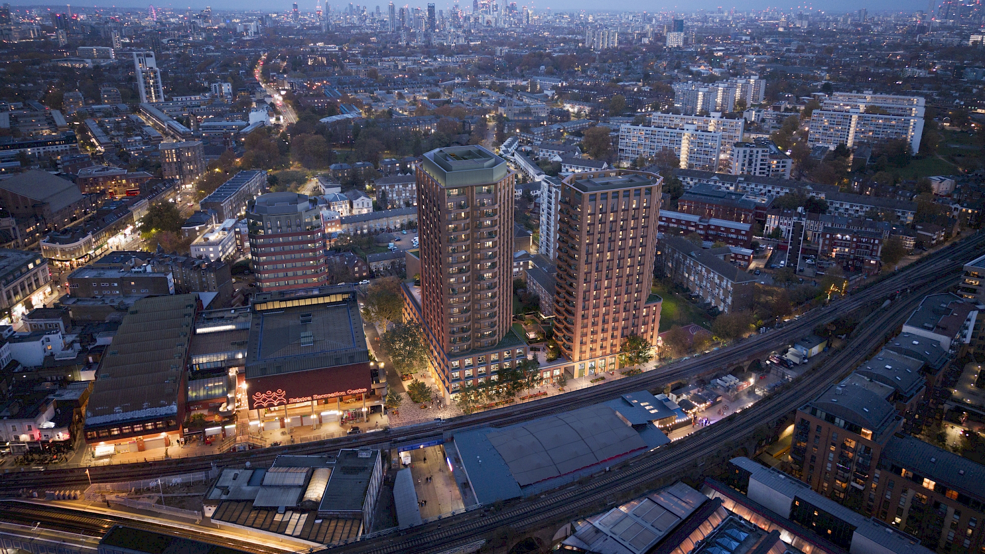 The design responds to Brixton’s urban grain with a series of four blocks that repair street frontages and create active, welcoming edges along Brixton Station Road, Pope’s Road and Canterbury Crescent. A robust, expressive material palette uses colour, texture and horizontal articulation to sit comfortably alongside the ‘Rec’ - Brixton Recreation Centre.