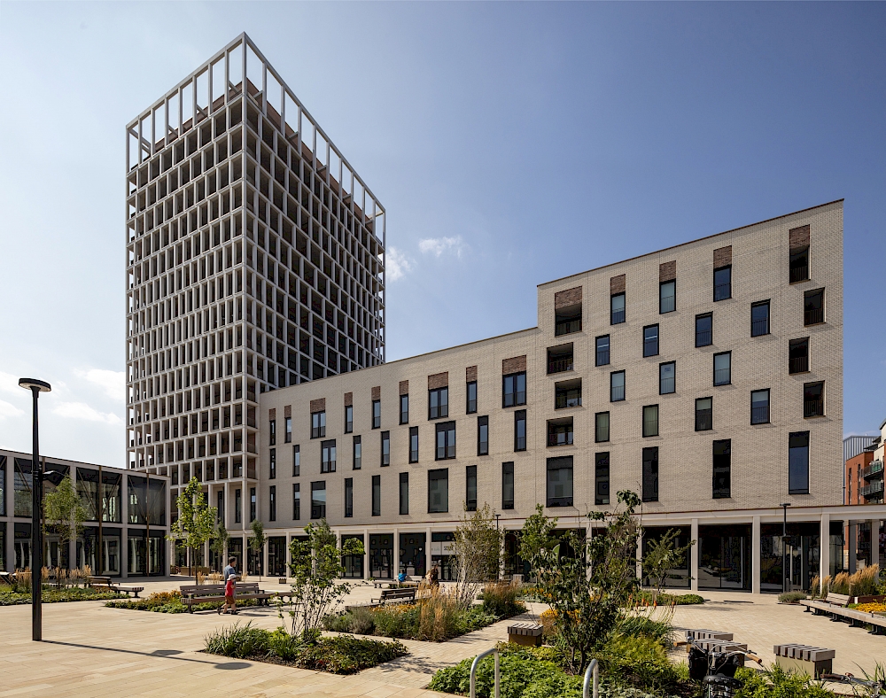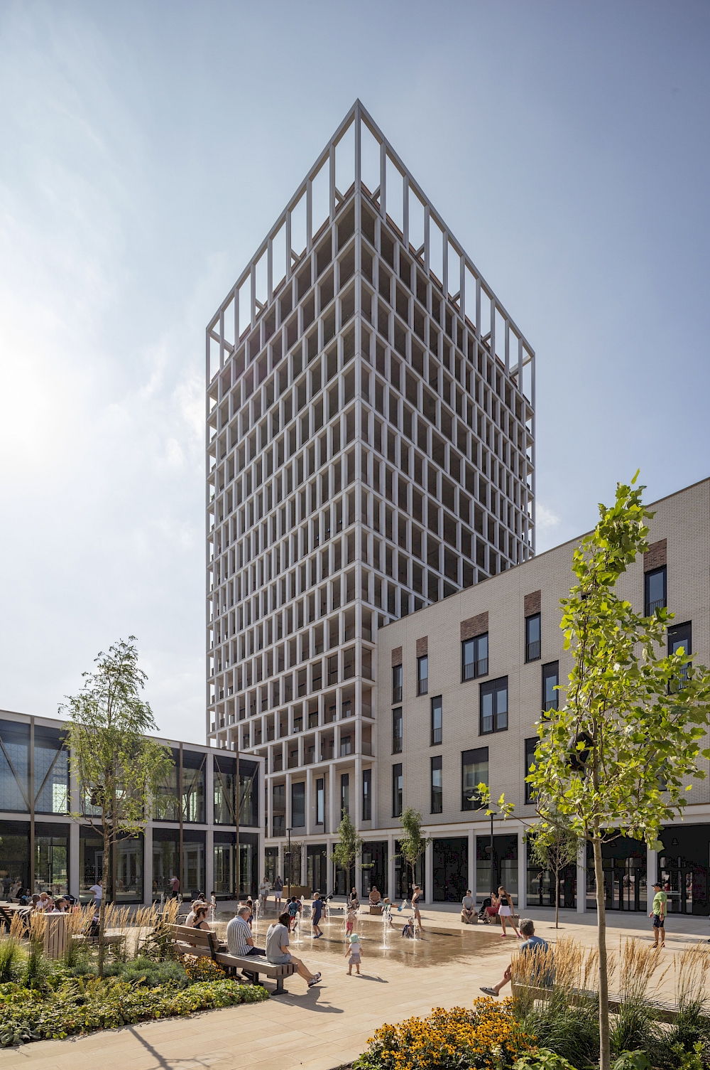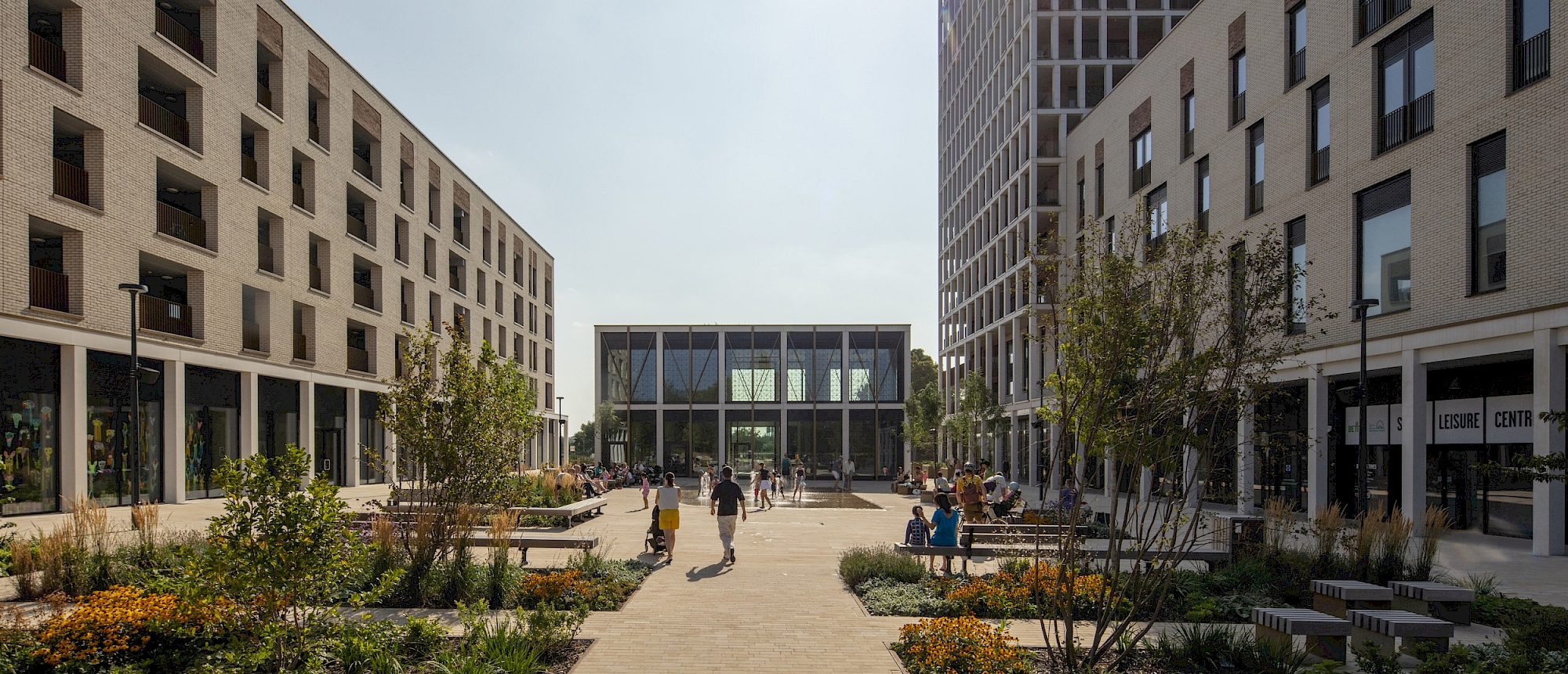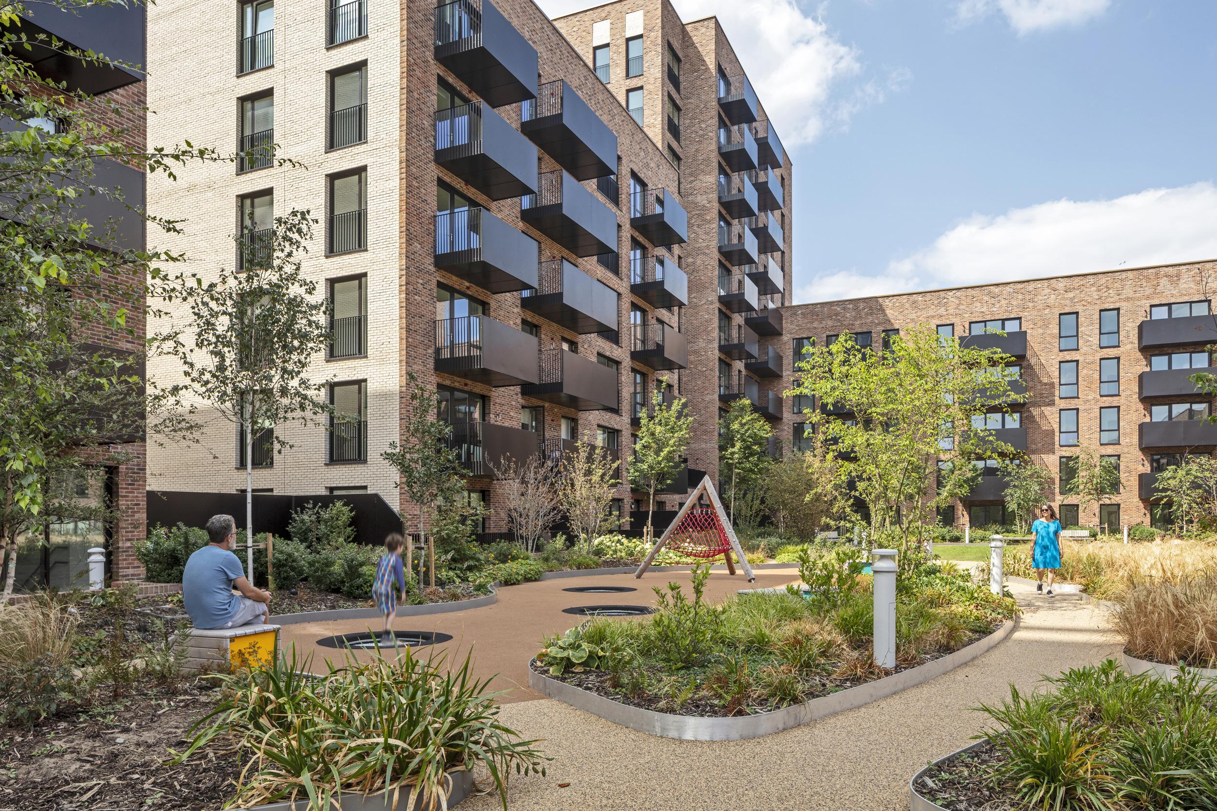 This mixed-use development revitalising The Score Centre in Leyton combines 750 new homes with a vibrant new gathering place surrounded by community facilities. The facilities include a pre-school nursery, café, community halls and a new health hub with 20 GP rooms. The much-needed new housing includes 50% affordable homes.